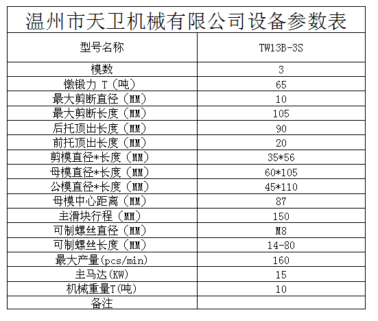 您當前的位置:首頁 / 產品中心 / 三模三沖冷鐓機 / └ TW13B(M8)多工位冷鐓機 / TW13B-3S全自動多工位冷鐓機